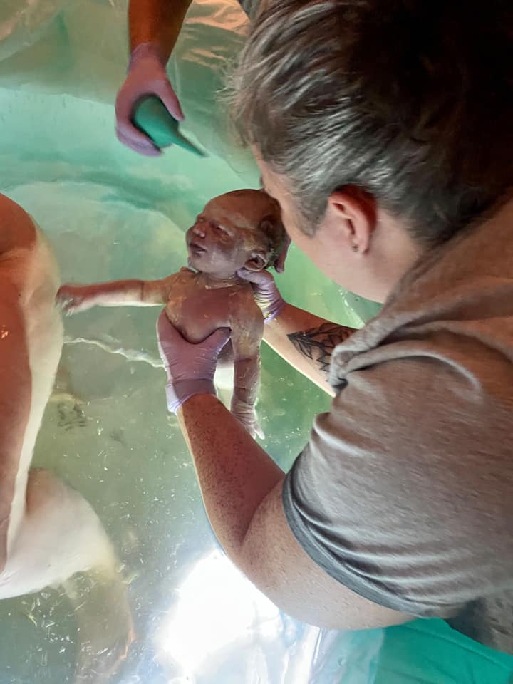 At some point during this process I hopped in the pool and let’s just say at this point it was game on. Carrie the midwife showed up and I know I had already had one push and it’s almost like her presence sent me over the edge. 3 pushes later, and a lot of work from the ENTIRE birth team, little Harlow made her debut at around 1:30 am. I will tell you guys those 2 hours were intense.