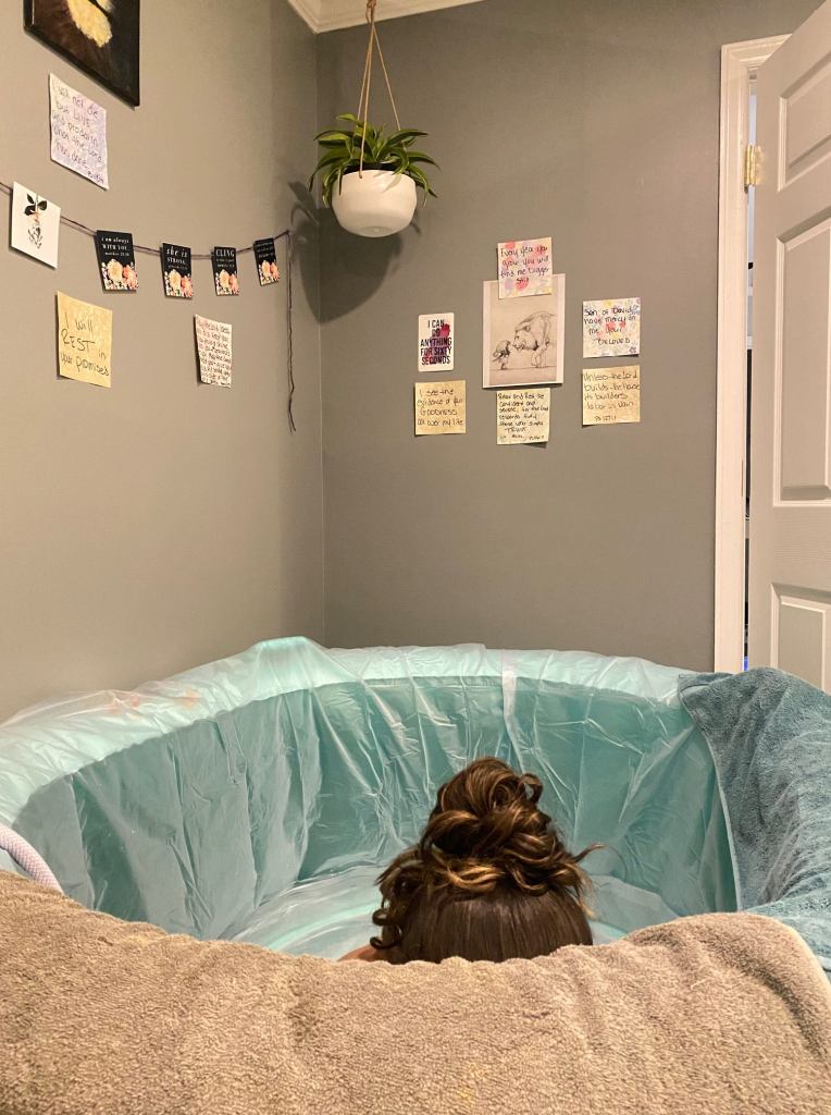 They kindly said, “No, you have to get out of the tub.” After a few more minutes they urged me to get out of the tub so I could birth the placenta. Encouraged by the cold water, and the warm towel waiting for me on the other side, I got out of the tub and onto the covered bed.