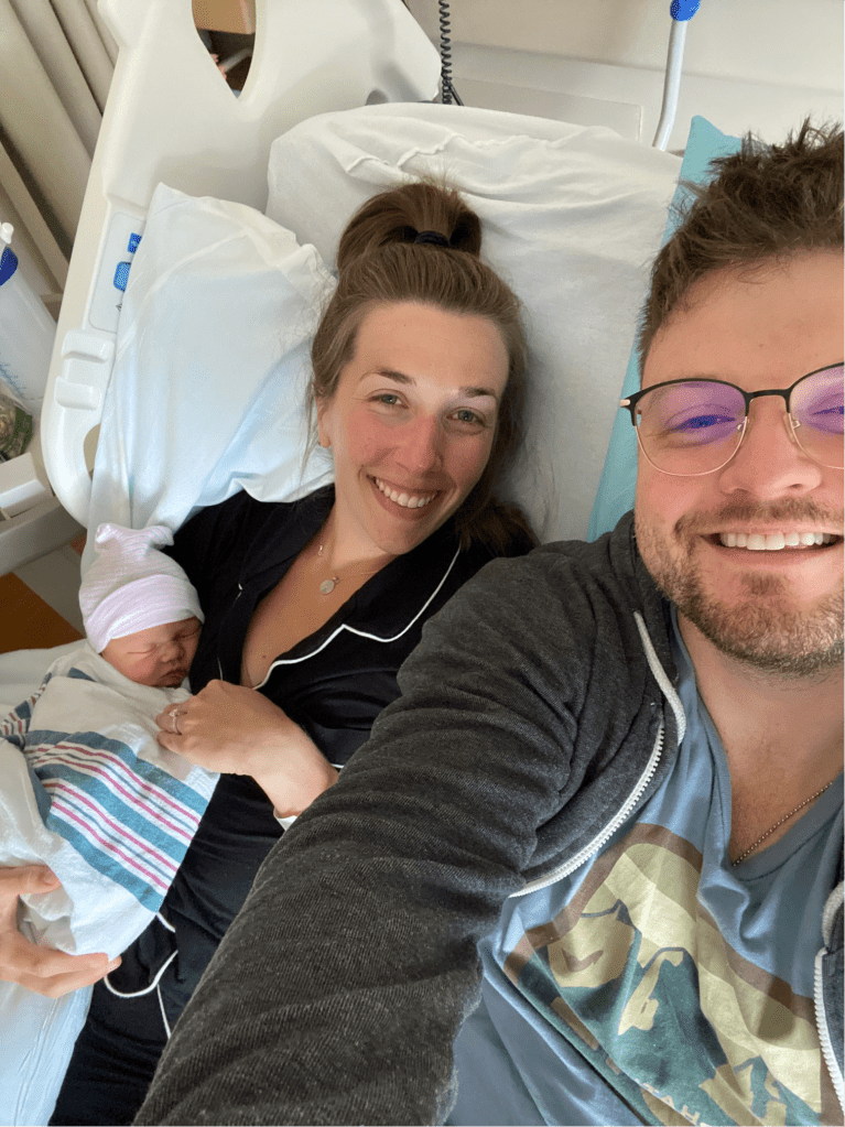 The car ride was not exactly comfortable for me but was not nearly as intense as I had mentally prepared myself for. While in the car, my husband began to play the birth playlist I had carefully compiled in the months prior. It was filled with relaxed/beautiful songs that we both already had sentimental attachment to, but wow – we had no idea how meaningful these songs would become in the wake of the delivery. I immediately began to cry as the music played, feeling so many mixed emotions about the journey ahead. I was grieving the life we were leaving behind, while also feeling anxious anticipation at the arrival of our first baby.
