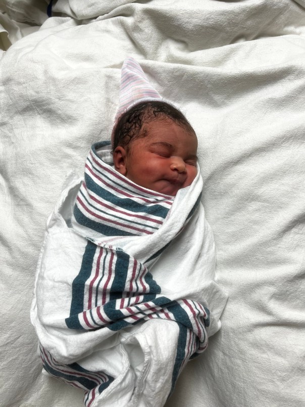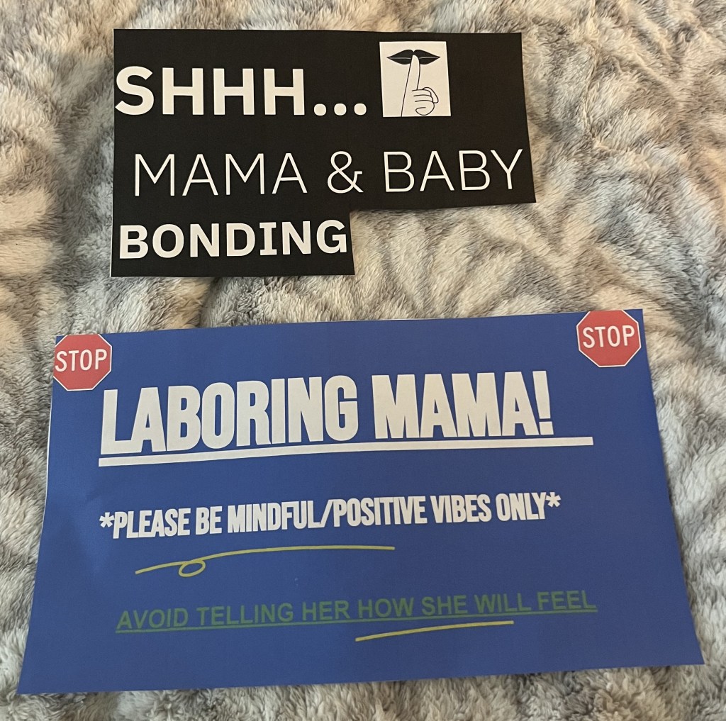 My husband (Terence) and I are so excited to say that we had a beautiful baby girl at 41 weeks 1 day. We have a very unique and fun birth story we are willing to share with y’all and we have some pictures of my focal point and signs for the room…did I remember to put them up no, but I did visualize my one true focal point throughout my labor.